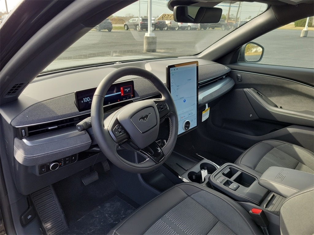 10 Speakers, 1st & 2nd Row Floor Liners w/o Carpet Mats, 4-Wheel Disc Brakes, ABS brakes, Adaptive suspension, Air Conditioning, Alloy wheels, AM/FM radio: SiriusXM with 360L, Apple CarPlay/Android Auto, Auto High-beam Headlights, Auto-dimming Rear-View mirror, Automatic temperature control, Brake assist, Bumpers: body-color, Cargo Area Cover, Cargo Floor Liner, Compass, Delay-off headlights, Driver door bin, Driver vanity mirror, Dual front impact airbags, Dual front side impact airbags, Electronic Stability Control, Emergency communication system: 911 Assist, Equipment Group 400A Standard Package, Exterior Parking Camera Rear, Four wheel independent suspension, Front anti-roll bar, Front Bucket Seats, Front Center Armrest, Front dual zone A/C, Front reading lights, Fully automatic headlights, Garage door transmitter, Heated door mirrors, Heated front seats, Heated Perforated ActiveX Performance Seats, Heated steering wheel, Illuminated entry, Interior Protection Package, Knee airbag, Low tire pressure warning, Matte Clear Hood Stripes, Memory seat, Mobile Power Cord (120V/240V), Mustang Mach-E GT Performance Upgrade, Navigation system: Connected Navigation, Occupant sensing airbag, Outside temperature display, Overhead airbag, Overhead console, Panic alarm, Panoramic Fixed-Glass Roof, Passenger door bin, Passenger vanity mirror, Power door mirrors, Power driver seat, Power Liftgate, Power passenger seat, Power steering, Power windows, Radio data system, Radio: B&O Sound System by Bang & Olufsen, Rain sensing wipers, Rear anti-roll bar, Rear seat center armrest, Rear side impact airbag, Rear window defroster, Rear window wiper, Remote keyless entry, Security system, SiriusXM w/360L, Speed control, Speed-sensing steering, Speed-Sensitive Wipers, Split folding rear seat, Spoiler, Steering wheel mounted audio controls, SYNC 4A w/Enhanced Voice Recognition, Telescoping steering wheel, Tilt steering wheel, Traction control, Trip computer, Turn signal indicator mirrors, Variably intermittent wipers, Wheels: 20" Monochromatic High Gloss Black-Painted.