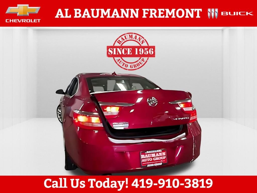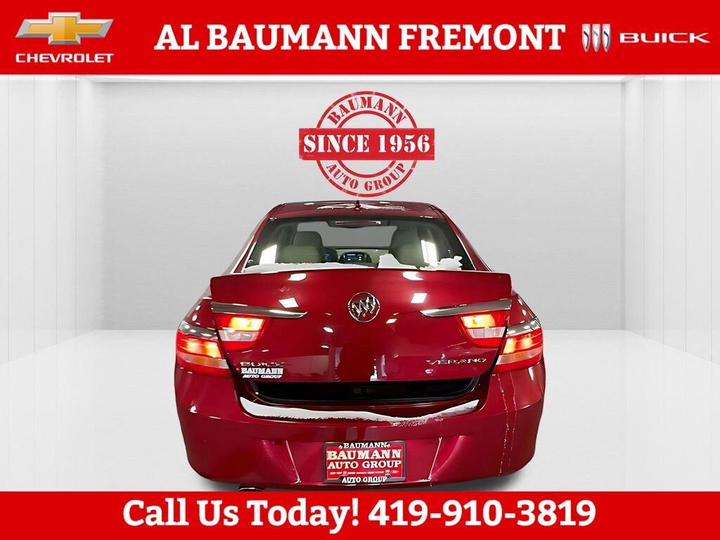 Odometer is 74495 miles below market average!Crystal Red Tintcoat 2013 Buick Verano 4D Sedan ECOTEC 2.4L I4 SIDI DOHC VVT 6-Speed Automatic Electronic with Overdrive FWDONLY TWO OWNERS.Car shopping is sometimes inconvenient and stressful, and we want to take the hassle out of this all-too-common experience. If youâre interested in more convenience, less frustration and a process that works efficiently to meet your needs as a customer. Al BAUMANN AUTO GROUP. The Best Price Up Front Cash Offers For Any Trade-In Multiple Financing Quotes In Minutes A Team Of Dedicated Salespeople.CALL,419-332-8236 or {1-866-330-3601}, Preferred Equipment Group 1SD, 18 x 8 Multi-Spoke Machined Alloy Wheels, 4-Wheel Disc Brakes, 6 Speakers, ABS brakes, Air Conditioning, Alloy wheels, AM/FM radio: SiriusXM, Automatic temperature control, Brake assist, Bumpers: body-color, CD player, Compass, Delay-off headlights, Driver door bin, Driver vanity mirror, Dual front impact airbags, Dual front side impact airbags, Electronic Stability Control, Emergency communication system: OnStar Directions & Connections, Exterior Parking Camera Rear, Four wheel independent suspension, Front anti-roll bar, Front Bucket Seats, Front Center Armrest, Front dual zone A/C, Front fog lights, Front reading lights, Fully automatic headlights, Illuminated entry, Knee airbag, License Plate Front Mounting Package, Low tire pressure warning, Occupant sensing airbag, Outside temperature display, Overhead airbag, Overhead console, Panic alarm, Passenger door bin, Passenger vanity mirror, Power door mirrors, Power steering, Power windows, Premium audio system: IntelliLink, Premium Ribbon Fabric Seat Trim, Radio data system, Radio: AM/FM/SiriusXM Stereo w/MP3 CD Player, Rear anti-roll bar, Rear reading lights, Rear seat center armrest, Rear side impact airbag, Rear window defroster, Remote keyless entry, Security system, SiriusXM Satellite Radio, Speed control, Split folding rear seat, Steering wheel mounted audio controls, Tachometer, Telescoping steering wheel, Tilt steering wheel, Traction control, Trip computer, Variably intermittent wipers, Voltmeter, Wheels: 18 x 8 Split Multi-Spoke Alloy, Preferred Equipment Group 1SD.
