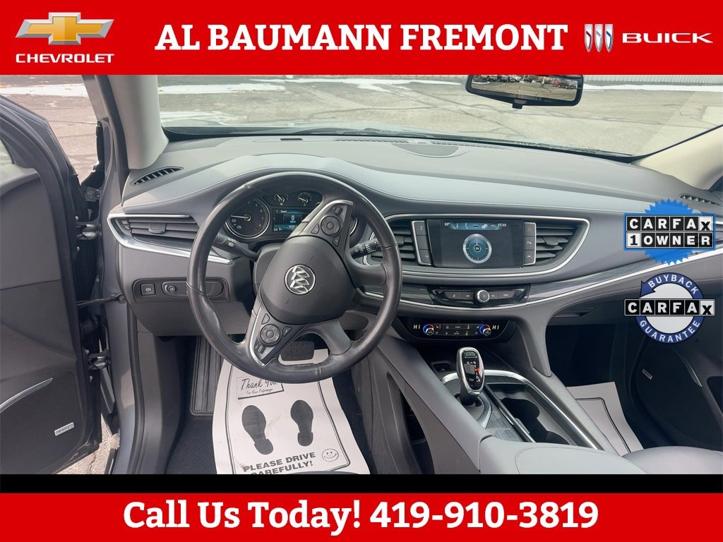 CALL,419-332-8236 or {1-866-330-3601}, FWD, 120-Volt Power Outlet, 20 Polished Aluminum Wheels, 3rd Row 60/40 Power Fold Split-Bench, 5000lbs Trailering Package, Bose Performance-Enhanced Premium 10-Speaker Syst, Experience Buick Package, Front Power Sliding Moonroof, HD Radio, Heated 2nd Row Outboard Seats, Heated Driver & Front Passenger Seats, Heated Steering Wheel, Heavy-Duty Cooling System, Memory Package, Navigation System, Outside Heated Power-Adjustable Mirrors, Power Tilt & Telescopic Steering Column, Preferred Equipment Group 1SN, Premium Package, Ventilated Driver & Front Passenger Seats, 10 Speakers, 18 Painted Aluminum Wheels, 3.49 Axle Ratio, 3rd row seats: split-bench, 4-Wheel Disc Brakes, 7-Passenger Seating, ABS brakes, Air Conditioning, Alloy wheels, AM/FM radio: SiriusXM, Apple CarPlay/Android Auto, Audio memory, Auto High-beam Headlights, Auto tilt-away steering wheel, Auto-dimming door mirrors, Auto-dimming Rear-View mirror, Automatic temperature control, Bird's Eye View Surround Vision, Brake assist, Bumpers: body-color, Compass, Delay-off headlights, Driver door bin, Driver vanity mirror, Dual front impact airbags, Dual front side impact airbags, Electronic Stability Control, Emergency communication system: OnStar Guidance, Four wheel independent suspension, Front anti-roll bar, Front Bucket Seats, Front Center Armrest, Front dual zone A/C, Front License Plate Mounting Bracket, Front reading lights, Fully automatic headlights, Garage door transmitter, Heated door mirrors, Heated front seats, Heated rear seats, Heated steering wheel, Illuminated entry, Inside Rearview Mirror w/Full Camera Display, Leather steering wheel, Low tire pressure warning, Memory seat, Occupant sensing airbag, Outside temperature display, Overhead airbag, Overhead console, Panic alarm, Passenger door bin, Passenger vanity mirror, Perforated Leather-Appointed Seat Trim, Power door mirrors, Power Driver Lumbar Control Seat Adjuster, Power driver seat, Power Liftgate, Power Passenger Lumbar Control Seat Adjuster, Power passenger seat, Power steering, Power windows, Premium audio system: Buick Infotainment System, Radio data system, Radio: Buick Infotainment System AM/FM Stereo, Rear air conditioning, Rear anti-roll bar, Rear reading lights, Rear window defroster, Rear window wiper, Remote keyless entry, Roof rack: rails only, Security system, SiriusXM Satellite Radio, Speed control, Speed-sensing steering, Spoiler, Steering wheel memory, Steering wheel mounted audio controls, Tachometer, Telescoping steering wheel, Tilt steering wheel, Traction control, Trip computer, Turn signal indicator mirrors, Variably intermittent wipers, Ventilated front seats, Voltmeter, FWD, 120-Volt Power Outlet, 20 Polished Aluminum Wheels, 3rd Row 60/40 Power Fold Split-Bench, 5000lbs Trailering Package, Bose Performance-Enhanced Premium 10-Speaker Syst, Experience Buick Package, Front Power Sliding Moonroof, HD Radio, Heated 2nd Row Outboard Seats, Heated Driver & Front Passenger Seats, Heated Steering Wheel, Heavy-Duty Cooling System, Memory Package, Navigation System, Outside Heated Power-Adjustable Mirrors, Power Tilt & Telescopic Steering Column, Preferred Equipment Group 1SN, Premium Package, Ventilated Driver & Front Passenger Seats.