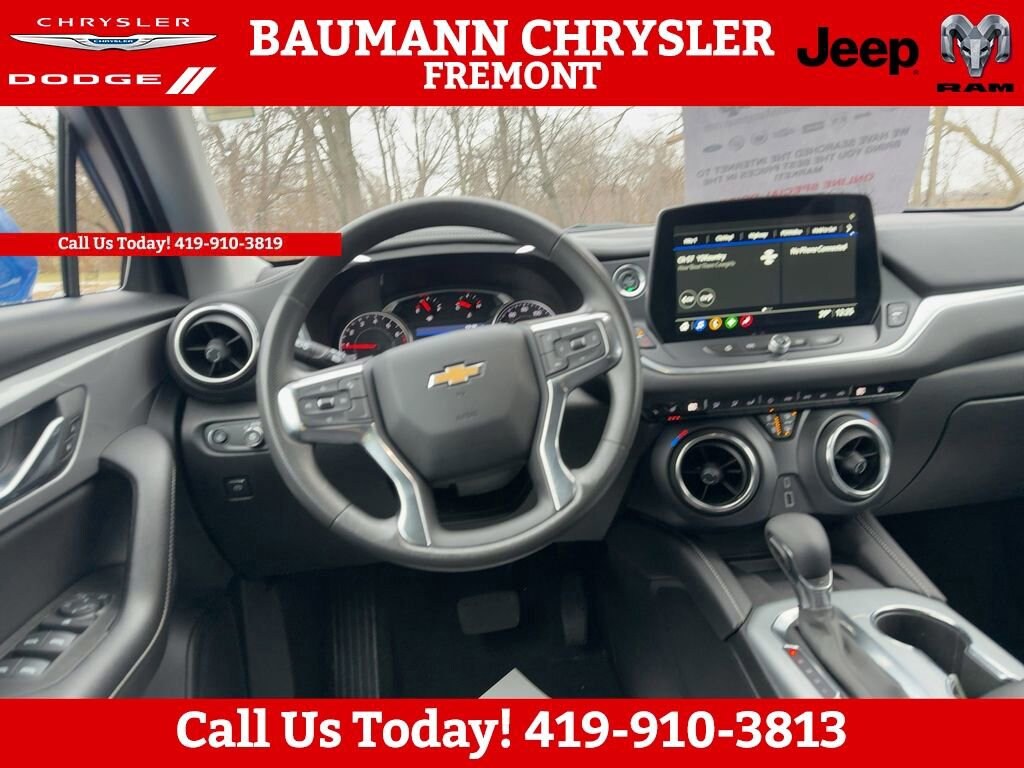 Priced below KBB Fair Purchase Price! Odometer is 2986 miles below market average! Clean CARFAX.Riptide Blue Metallic 2024 Chevrolet Blazer LT 20 GLOSS BLACK ALUMINUM WHEELS, 4D Sport Utility 2.0L Turbocharged 9-Speed Automatic with Overdrive FWDONE OWNER CLEAN CARFAX!!Car shopping is sometimes inconvenient and stressful, and we want to take the hassle out of this all-too-common experience. If youâre interested in more convenience, less frustration and a process that works efficiently to meet your needs as a customer. Al BAUMANN AUTO GROUP. The Best Price Up Front Cash Offers For Any Trade-In Multiple Financing Quotes In Minutes A Team Of Dedicated Salespeople.CALL.{419-332-8291}{1-877-394-1162}, 1st & 2nd Row All-Weather Floor Liners (LPO), Adaptive Cruise Control, Black Roof-Mounted Side Rails, Convenience Package, Driver Confidence Package, Enhanced Automatic Emergency Braking, Floor Liner Package (LPO), Inside Rear-View Auto-Dimming Mirror, Integrated Cargo Liner (LPO), Lane Change Alert w/Side Blind Zone Alert, Preferred Equipment Group 2LT, Rear Cross Traffic Alert, Rear Park Assist w/Audible Warning, Rear Power Programmable Liftgate, Universal Home Remote, Wireless Charging, 170 Amp Alternator, 3.47 Final Drive Axle Ratio, 4-Way Manual Front Passenger Seat Adjuster, 4-Wheel Disc Brakes, 6 Speakers, 6-Speaker Audio System Feature, 8-Way Power Driver Seat Adjuster, ABS brakes, Air Conditioning, Alloy wheels, AM/FM radio: SiriusXM with 360L, Apple CarPlay/Android Auto, Auto High-beam Headlights, Automatic temperature control, Black Lug Nut & Wheel Lock Kit (LPO), Brake assist, Bumpers: body-color, Child-Seat-Sensing Airbag, Compass, Delay-off headlights, Driver door bin, Driver vanity mirror, Dual front impact airbags, Dual front side impact airbags, Electronic Stability Control, Emergency communication system: OnStar and Chevrolet connected services capable, Four wheel independent suspension, Front & Rear Black Bowties, Front anti-roll bar, Front Bucket Seats, Front Center Armrest, Front dual zone A/C, Front reading lights, Fully automatic headlights, Heated door mirrors, Heated Driver & Front Passenger Seats, Heated front seats, Illuminated entry, Knee airbag, Leather Shift Knob, Low tire pressure warning, Not Equipped w/Rear Park Assist, Occupant sensing airbag, Outside temperature display, Overhead airbag, Overhead console, Panic alarm, Passenger door bin, Passenger vanity mirror, Power door mirrors, Power Driver Lumbar Control, Power driver seat, Power steering, Power windows, Premium audio system: Chevrolet Infotainment 3 Plus, Premium Cloth Seat Trim, Radio data system, Radio: Chevrolet Infotainment 3 Plus System, Rear anti-roll bar, Rear reading lights, Rear seat center armrest, Rear window defroster, Rear window wiper, Remote keyless entry, Ride & Handling Suspension, Security system, SiriusXM w/360L, Speed control, Speed-sensing steering, Split folding rear seat, Spoiler, Steering wheel mounted audio controls, Tachometer, Telescoping steering wheel, Tilt steering wheel, Traction control, Trip computer, Variably intermittent wipers, Voltmeter, Wheels: 18 Grazen Metallic Aluminum, Wheels: 20 Gloss Black Aluminum, 1st & 2nd Row All-Weather Floor Liners (LPO), Adaptive Cruise Control, Black Roof-Mounted Side Rails, Convenience Package, Driver Confidence Package, Enhanced Automatic Emergency Braking, Floor Liner Package (LPO), Inside Rear-View Auto-Dimming Mirror, Integrated Cargo Liner (LPO), Lane Change Alert w/Side Blind Zone Alert, Preferred Equipment Group 2LT, Rear Cross Traffic Alert, Rear Park Assist w/Audible Warning, Rear Power Programmable Liftgate, Universal Home Remote, Wireless Charging.