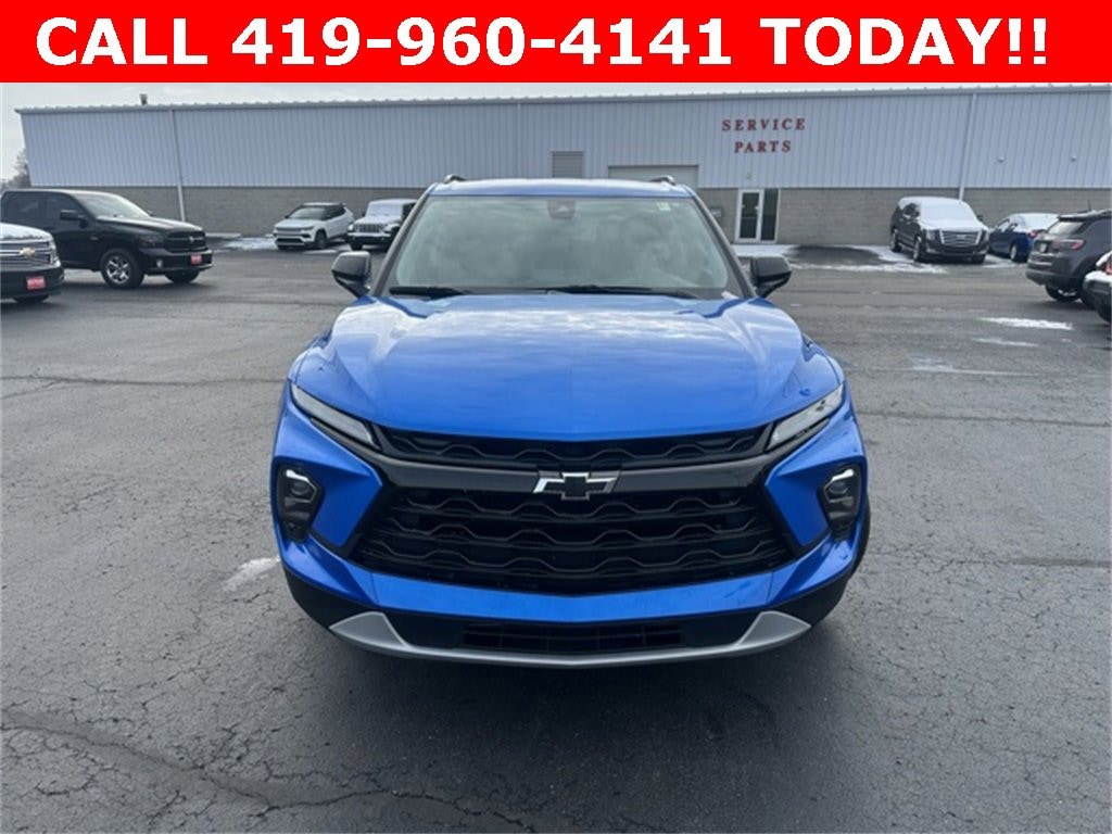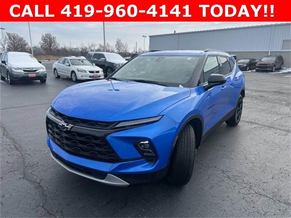 Recent Arrival! Odometer is 4025 miles below market average! Clean CARFAX.Riptide Blue Metallic 2024 Chevrolet Blazer LT 4D Sport Utility 2.0L Turbocharged 9-Speed Automatic with Overdrive FWDCLEAN CARFAX REPORT, Heated Seats, Keyless Entry, Remote Start, Backup Camera, Navigation, Satellite Radio, FULL SAFETY INSPECTION CHECK, Cruise Control, Multi-zone Climate Control, Power Locks, Power Windows, Security System, Steering Wheel Controls, Blind Spot Monitor, Keyless Ignition, Parking Sensors, OnStar, Touchscreen controls, Blind-spot Monitors, Lane Keeping assist, Push Button Start, CALL 419- 732 -3148 or 419- 960- 4141, 170 Amp Alternator, 3.47 Final Drive Axle Ratio, 4-Way Manual Front Passenger Seat Adjuster, 4-Wheel Disc Brakes, 6 Speakers, 6-Speaker Audio System Feature, 8-Way Power Driver Seat Adjuster, ABS brakes, Adaptive Cruise Control, Air Conditioning, Alloy wheels, AM/FM radio: SiriusXM with 360L, Apple CarPlay/Android Auto, Auto High-beam Headlights, Automatic temperature control, Black Roof-Mounted Side Rails, Brake assist, Bumpers: body-color, Child-Seat-Sensing Airbag, Compass, Convenience Package, Delay-off headlights, Driver Confidence Package, Driver door bin, Driver vanity mirror, Dual front impact airbags, Dual front side impact airbags, Electronic Stability Control, Emergency communication system: OnStar and Chevrolet connected services capable, Enhanced Automatic Emergency Braking, Four wheel independent suspension, Front & Rear Black Bowties, Front anti-roll bar, Front Bucket Seats, Front Center Armrest, Front dual zone A/C, Front reading lights, Fully automatic headlights, Heated door mirrors, Heated Driver & Front Passenger Seats, Heated front seats, Illuminated entry, Inside Rear-View Auto-Dimming Mirror, Knee airbag, Lane Change Alert w/Side Blind Zone Alert, Leather Shift Knob, Low tire pressure warning, Midnight/Sport Edition, Occupant sensing airbag, Outside temperature display, Overhead airbag, Overhead console, Panic alarm, Passenger door bin, Passenger vanity mirror, Power door mirrors, Power Driver Lumbar Control, Power driver seat, Power steering, Power windows, Preferred Equipment Group 2LT, Premium audio system: Chevrolet Infotainment 3 Plus, Premium Cloth Seat Trim, Radio data system, Radio: Chevrolet Infotainment 3 Plus System, Rear anti-roll bar, Rear Cross Traffic Alert, Rear Park Assist w/Audible Warning, Rear Power Programmable Liftgate, Rear reading lights, Rear seat center armrest, Rear window defroster, Rear window wiper, Remote keyless entry, Ride & Handling Suspension, Security system, SiriusXM w/360L, Speed control, Speed-sensing steering, Split folding rear seat, Spoiler, Steering wheel mounted audio controls, Tachometer, Telescoping steering wheel, Tilt steering wheel, Traction control, Trip computer, Universal Home Remote, Variably intermittent wipers, Voltmeter, Wheels: 18 Grazen Metallic Aluminum, Wheels: 18 High Gloss Black Painted Aluminum, Wireless Charging.