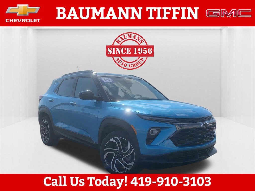 Odometer is 6421 miles below market average! Clean CARFAX.Marina Blue Metallic 2025 Chevrolet TrailBlazer RS 4D Sport Utility 1.3L Ecotec Turbo DOHC SIDI w/VVT CVT FWD8-Way Power Driver Seat Adjuster, Driver Confidence Package, Lane Change Alert w/Side Blind Zone Alert, Preferred Equipment Group 1RS, Rear Cross Traffic Alert, Rear Park Assist, 1 Type-A & 1 Type-C USB Ports, 2-Way Power Driver Lumbar Seat Adjuster, 4-Way Manual Front Passenger Seat Adjuster, 4-Wheel Disc Brakes, 5.45 Final Drive Axle Ratio, 6 Speakers, 6-Speaker Audio System Feature, ABS brakes, Air Conditioning, Alloy wheels, AM/FM radio: SiriusXM, Auto High-beam Headlights, Brake assist, Bumpers: body-color, Compass, Delay-off headlights, Driver door bin, Driver vanity mirror, Dual front impact airbags, Dual front side impact airbags, Electronic Stability Control, Emergency communication system: OnStar and Chevrolet connected services capable, Evotex Seat Trim, Exterior Parking Camera Rear, Flat-Folding Front Passenger Seatback, Front & Rear All-Weather Floor Liners (LPO), Front anti-roll bar, Front Bucket Seats, Front Center Armrest, Front reading lights, Front wheel independent suspension, Fully automatic headlights, Heated door mirrors, Heated Driver & Front Passenger Seats, Heated front seats, Heated steering wheel, Illuminated entry, Knee airbag, Low tire pressure warning, Mosaic Black Metallic Two-Tone Roof, Occupant sensing airbag, Overhead airbag, Overhead console, Panic alarm, Passenger door bin, Passenger vanity mirror, Power door mirrors, Power driver seat, Power steering, Power windows, Radio data system, Radio: AM/FM Stereo Audio System, Rear seat center armrest, Rear side impact airbag, Rear window defroster, Rear window wiper, Remote keyless entry, Ride & Handling Suspension, Security system, SiriusXM Trial Subscription, Speed control, Split folding rear seat, Spoiler, Steering wheel mounted audio controls, Tachometer, Telescoping steering wheel, Tilt steering wheel, Traction control, Trip computer, Variably intermittent wipers, Wheels: 19 High Gloss Black Machined Aluminum, Wireless Apple CarPlay/Android Auto, 8-Way Power Driver Seat Adjuster, Driver Confidence Package, Lane Change Alert w/Side Blind Zone Alert, Preferred Equipment Group 1RS, Rear Cross Traffic Alert, Rear Park Assist.