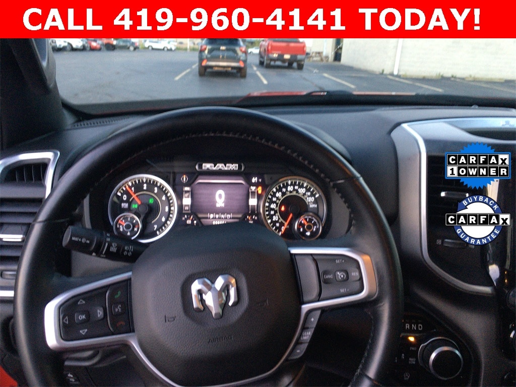 CALL 419- 732 -3148 or 419- 960- 4141, 115V Auxiliary Power Outlet, 115V Auxiliary Rear Power Outlet, 2nd Row In Floor Storage Bins, 3 Rear Seat Head Restraints, 3.21 Rear Axle Ratio, 4 Way Front Headrests, 4-Wheel Disc Brakes, 400W Inverter, 48V Belt Starter Generator, 4G LTE Wi-Fi Hot Spot, 6 Speakers, 8.4" Touchscreen Display, ABS brakes, Air Conditioning, Air Conditioning ATC w/Dual Zone Control, All R1 High Radios, All Radio Equipped Vehicles, Alloy wheels, AM/FM radio, Apple CarPlay, Auto-Dimming Exterior Driver Mirror, Auto-Dimming Rear-View Mirror, Big Horn Badge, Big Horn Level 2 Equipment Group, Black Exterior Mirrors, Black Premium Power Mirrors, Bluetooth Handsfree Phone & Audio, Brake assist, Bumpers: chrome, Class IV Receiver Hitch, Cloth Bench Seat, Cluster 7.0" TFT Color Display, Compass, Connected Travel & Traffic Services, Connectivity - US/Canada, Convex Wide-Angle Mirror Insert, Delay-off headlights, Disassociated Touchscreen Display, Driver door bin, Dual front impact airbags, Dual front side impact airbags, Electronic Stability Control, Emergency communication system: SiriusXM Guardian, Exterior Mirrors Courtesy Lamps, Exterior Mirrors w/Heating Element, Exterior Mirrors w/Supplemental Signals, For Details, Visit DriveUconnect.com, Front anti-roll bar, Front Center Armrest w/Storage, Front fog lights, Front License Plate Bracket, Front reading lights, Front Seat Back Map Pockets, Front wheel independent suspension, Fully automatic headlights, Global Telematics Box Module (TBM), Glove Box Lamp, Google Android Auto, GPS Antenna Input, GPS Navigation, HD Radio, Heated door mirrors, Heated Front Seats, Heated Steering Wheel, Heavy-Duty Engine Cooling, Illuminated entry, Integrated Center Stack Radio, Integrated Voice Command w/Bluetooth, Leather steering wheel, Low tire pressure warning, Media Hub w/2 Charge Only USBs, MOPAR Front & Rear Rubber Floor Mats, Occupant sensing airbag, Outside temperature display, Overhead airbag, Overhead console, Panic alarm, ParkSense Front/Rear Park Assist w/Stop, ParkView Rear Back-Up Camera, Passenger door bin, Passenger vanity mirror, Power 2-Way Driver Lumbar Adjust, Power 8-Way Driver Seat, Power Adjustable Pedals, Power door mirrors, Power steering, Power windows, Power-Folding Mirrors, Quick Order Package 27Z Big Horn, Radio data system, Radio: Uconnect 3 w/5" Display, Radio: Uconnect 5 Nav w/8.4" Display, Radio: Uconnect 5 W w/8.4" Display, Rear 60/40 Folding Seat, Rear anti-roll bar, Rear Dome w/On/Off Switch Lamp, Rear Power Sliding Window, Rear seat center armrest, Rear step bumper, Rear Wheelhouse Liners, Rear Window Defroster, Remote keyless entry, Remote Start System, Security Alarm, SiriusXM Radio Service, SiriusXM Satellite Radio, SiriusXM w/360L, Speed control, Split folding rear seat, Steering wheel mounted audio controls, Sun Visors w/Illuminated Vanity Mirrors, Tachometer, Telescoping steering wheel, Tilt steering wheel, Traction control, Trailer Brake Control, Trip computer, Universal Garage Door Opener, USB Host Flip, Variably intermittent wipers, Voltmeter, Wheels: 18" x 8" Cast-Aluminum Painted, Wheels: 20" x 9" Aluminum Chrome Clad (WRK).