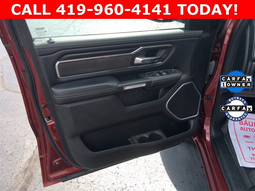 Priced below KBB Fair Purchase Price! Odometer is 6802 miles below market average! CARFAX One-Owner. Clean CARFAX.Delmonico Red Pearlcoat 2023 Ram 1500 Laramie 4D Crew Cab HEMI 5.7L V8 Multi Displacement VVT eTorque 8-Speed Automatic 4WDCALL 419- 732 -3148 or 419- 960- 4141, #1 Seat Foam Cushion, 10 Speakers, 12 Touchscreen Display, 2nd Row In Floor Storage Bins, 3 Rear Seat Head Restraints, 3.21 Rear Axle Ratio, 4 Way Front Headrests, 4-Wheel Disc Brakes, 48V Belt Starter Generator, 4G LTE Wi-Fi Hot Spot, ABS brakes, Adjustable pedals, Air Conditioning, Alloy wheels, AM/FM radio: SiriusXM with 360L, Apple CarPlay, Apple CarPlay/Android Auto, Audio memory, Auto High Beam Headlamp Control, Auto-dimming door mirrors, Auto-Dimming Exterior Driver Mirror, Auto-dimming Rear-View mirror, Automatic temperature control, Blind Spot & Cross Path Detection, Brake assist, Bumpers: chrome, Chrome Exterior Mirrors, Class IV Receiver Hitch, Compass, Connected Travel & Traffic Services, Connectivity - US/Canada, Convex Wide-Angle Exterior Mirror Insert, Delay-off headlights, Disassociated Touchscreen Display, Driver door bin, Driver Seat Memory, Driver vanity mirror, Dual front impact airbags, Dual front side impact airbags, Electric Shift-On-Demand Transfer Case, Electronic Stability Control, Exterior Mirrors Courtesy Lamps, Exterior Mirrors w/Heating Element, Exterior Mirrors w/Memory, Exterior Mirrors w/Supplemental Signals, Foam Bottle Insert (Door Trim Panel), For Details, Visit DriveUconnect.com, For More Info, Call 800-643-2112, Front anti-roll bar, Front Center Armrest w/Storage, Front Door Accent Lighting, Front dual zone A/C, Front fog lights, Front LED Fog Lamps, Front License Plate Bracket, Front reading lights, Front Seat Back Map Pockets, Front wheel independent suspension, Fully automatic headlights, Garage door transmitter, Global Telematics Box Module (TBM), Google Android Auto, GPS Antenna Input, GPS Navigation, HD Radio, Heated door mirrors, Heated Front Seats, Heated front seats, Heated Steering Wheel, Heated steering wheel, Illuminated entry, Integrated Center Stack Radio, Integrated Voice Command w/Bluetooth, Laramie Level 1 Equipment Group, Leather steering wheel, Leather Trim 40/20/40 Bench Seat, LED Reflector Headlamps, Low tire pressure warning, Memory seat, MOPAR Front & Rear Rubber Floor Mats, Navigation System, Occupant sensing airbag, Outside temperature display, Overhead airbag, Overhead console, Panic alarm, ParkSense Front/Rear Park Assist w/Stop (DISC), ParkView Rear Back-Up Camera, Passenger door bin, Passenger vanity mirror, Pedal memory, Power 2-Way Driver Lumbar Adjust, Power 2-Way Passenger Lumbar Adjust, Power 8-Way Driver & Passenger Seats, Power door mirrors, Power driver seat, Power passenger seat, Power steering, Power windows, Power-Folding Mirrors, Quick Order Package 27H Laramie, Radio data system, Radio: Uconnect 5 Nav w/12.0 Display, Radio: Uconnect 5 Nav w/8.4 Display, Rain Sensitive Windshield Wipers, RAM Grille Badge - Chrome, Rear 60/40 Folding Seat, Rear anti-roll bar, Rear Door Accent Lighting, Rear Power Sliding Window, Rear seat center armrest, Rear step bumper, Rear Window Defroster, Remote keyless entry, Remote Tailgate Release, Security system, SiriusXM Radio Service, SiriusXM w/360L, Speed control, Split folding rear seat, Steering wheel mounted audio controls, Tachometer, Telescoping steering wheel, Tilt steering wheel, Traction control, Trailer Brake Control, Trip computer, Turn signal indicator mirrors, USB Host Flip, Variably intermittent wipers, Ventilated Front Seats, Ventilated front seats, Voltmeter, Wheels: 18 x 8 Aluminum Base Painted, Wheels: 20 x 9 Premium Paint/Polished.